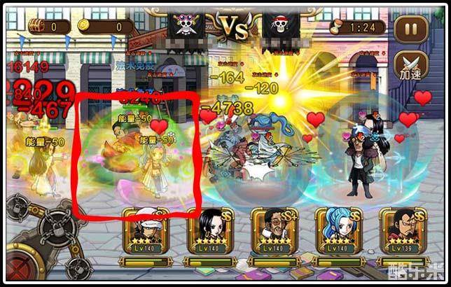 上图中,居鲁士对中排突破黑胡子的保护已经延伸到了前排的突破雷利身上。在本轮强化之后,居鲁士二技能的作用范围确实大大提升了。