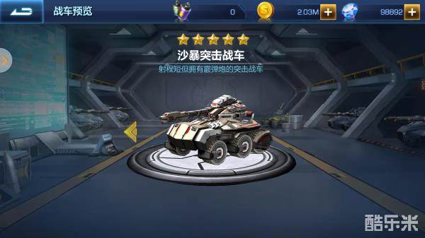 玩法简介:骚扰型的突击车辆,射程为突击车中最短,通过发射霰弹对敌方造成伤害,一次发射弹丸数量为12,需要抵近射击方可造成足量伤害;