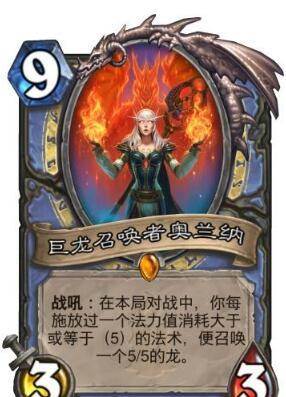 巨龙召唤者奥兰纳是控制法后期的中坚力量。大量的高费法术让这张卡有相当不错的爆发能力,如果恰好对手没有解牌,那很可能被一波带走。
