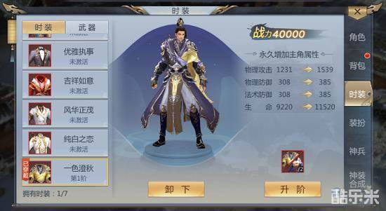 点击【角色】-【时装】按钮进入时装界面,这里分为衣服时装和武器时装两大模块,使用相应的时装碎片可激活对应的时装,点击穿戴后就可以在游戏中看到该时装的外观了。