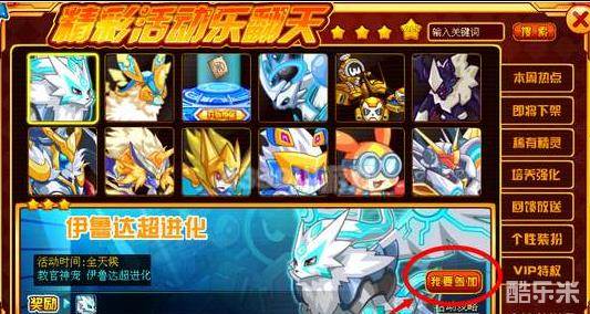 1、首先赛尔们可以在活动面板中找到伊鲁达超进化活动,点击我要参加去看看吧~