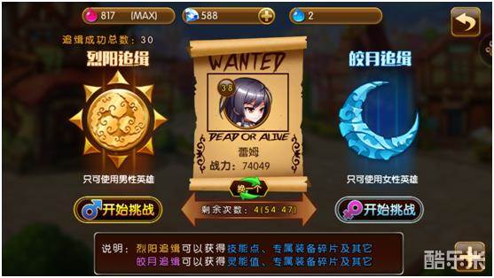 日月追缉是《萌漫大乱斗》中比较有特色的一个玩法,主要由“烈阳追缉”和“皎月追缉”两大版块构成。玩家可以通过点击“换一个”按钮更换被追缉的对象。