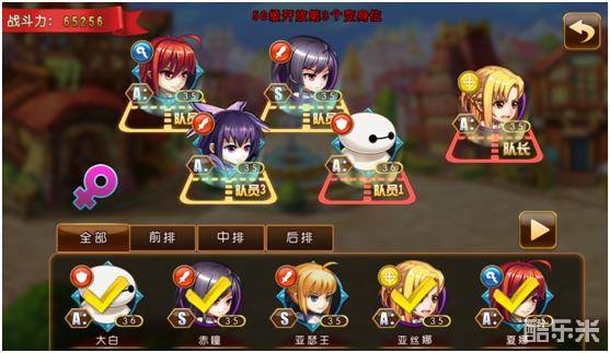 而皎月追缉则仅可以使用女性英雄上阵闯关,如下图: