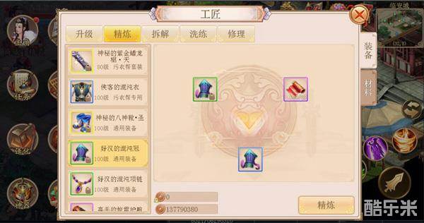 使用装备精炼攻功能可以提高装备的品质(绿色变蓝色,蓝色变紫色~)