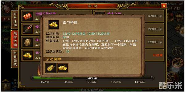 4.谁与争锋:限时多人PVP活动,活动胜利者可获得绚丽称号及元宝奖励