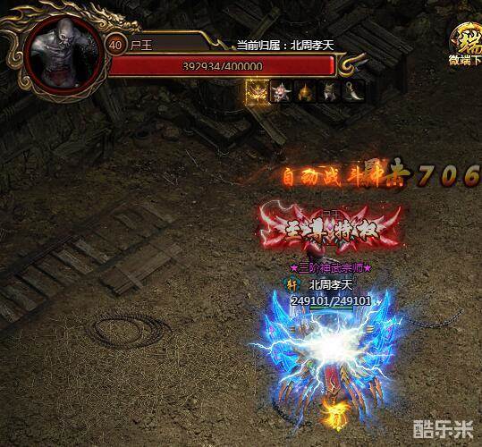 尸王的等级是40级,血量是40万,打的时候会有个归属权,不用管它,发合击就能搞定,因为这毕竟是游戏里最弱的一只BOSS。