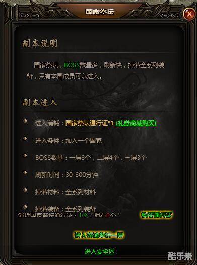 还有一处是在帝鸿祭坛。进入需要国家祭坛通行证1个,没有的话可以到礼券商城去购买一下。