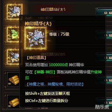神印精华(大):双击使用增加1000000点神印精华。可在【神器-神印】面板消耗神印精华值升级神印。