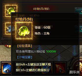 经验丹(特)。双击使用增加人物经验5000万。