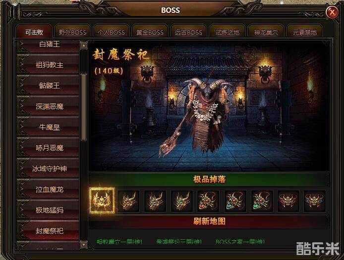 封魔祭祀的等级为140级。建议玩家等级到达130级,做好万全准备后再去与之抗衡。