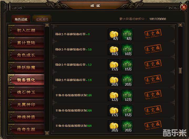 强化1个主角装备位至+12。可获金币15万,成就积分15万。