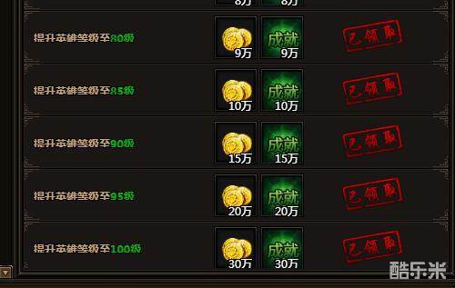 提升主角等级至100级。可获金币30万,成就积分30万。