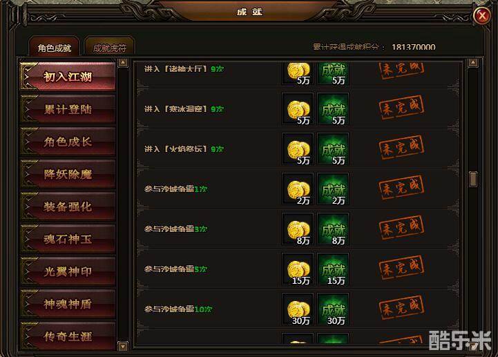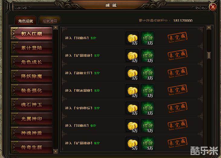 进入“矿洞遗迹”9次。金币5万,成就5万。