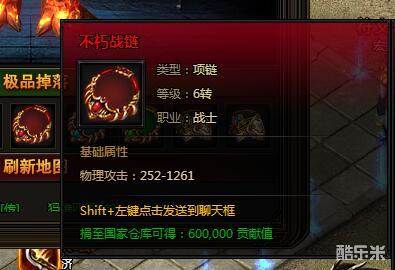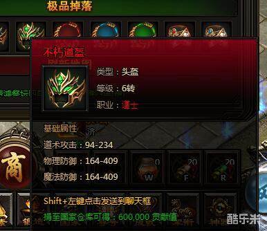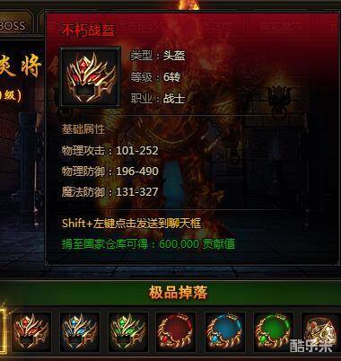 在掉落极品道具方面:赤炎将领会掉落赤炎将领徽章、不朽战盔(6转)、不朽法盔(6转)、不朽道盔(6转)、不朽战链(6转)、不朽法链(6转)、不朽道链(6转)、不朽战带(6转)以及不朽法带(6转)。