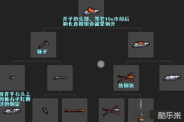 再用钢锤砸另一块未冷却的钢锭变成钢斧头再装上长直木头(长直树枝被锋利石片使用一次变成长直木头)变成钢斧头,其他的钢工具,暂时不会。