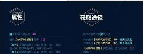 正因为有了光明气息的存在,S级特武耀天有着能够斩断一切邪恶力量的威力。而此番在《龙之谷手游》中现世的耀天武器,也有着超越以往的非凡实力。玩家们通过新气息商店、拍卖行就可以获得光明气息卷轴,而集齐30、12个之后就可以分别兑换耀天主武器和副武器,享受力量、敏捷、智力和体质的全面提升,并获得超高的物理攻击和魔法攻击加成,化身实力幸运儿踏上冒险之路。