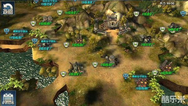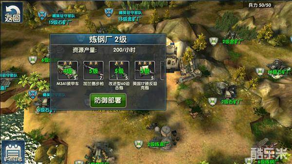 进入战场后,除了敌军部队外,资源点本身也有防御设施(地堡、炮塔等),越高级的资源点,防御设施的威力也越大, 建议玩家先使用照明弹了解防御设施的位置,再选择合适的进攻路线。