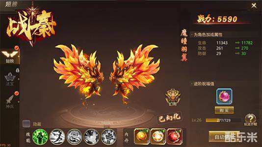 3 通过消耗翅膀精华可以不停的提升翅膀等级从而获得更多的属性。