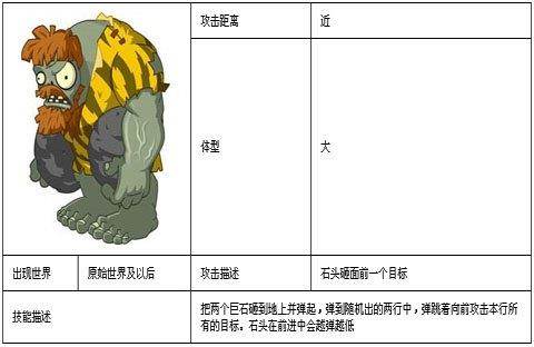 技能描述:把两个巨石砸到地上并弹起,弹到随机出的两行中,弹跳着向前攻击本行所有的目标。石头在前进中会越弹越低