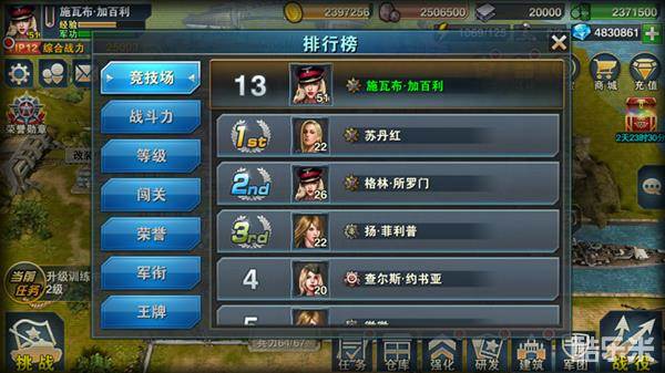 战斗力:按照玩家当前战斗力进行排行,如果玩家对兵力解散或调整,那该绑定也会随之变动。