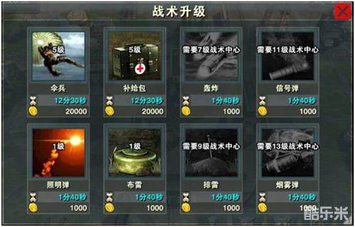 进入战术中心建筑,选择所需升级的战术进行升级。