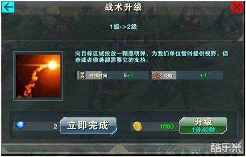 选择所需升级战术,可查看战术升级后所增加属性及消耗资源