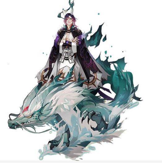 立绘方面和一开始公开的形象相同,不过这次一目连身边的龙从原本环绕的状态变成了骑乘的状态,一目连在男式神中也算是少有的有坐骑的式神了,瞬间高大上了很多。