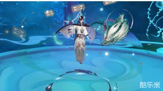 二技能释放酷炫简单,身上连护符+淡绿色的风一起环绕一周,包括龙也在一目连身上绕了一圈,整个动画过程不超过2秒,效率方面非常出色。
