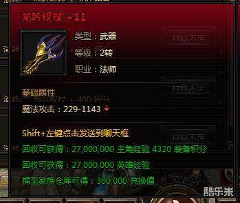 龙吟权杖。法师装备。2转以上装备,魔法攻击提升229-1143点。