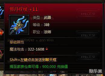 邪月权杖。法师装备。3转以上装备。魔法攻击提升322-1608点。