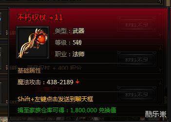 不朽权杖。法师装备。5转以上装备。魔法攻击提升438-2189点。