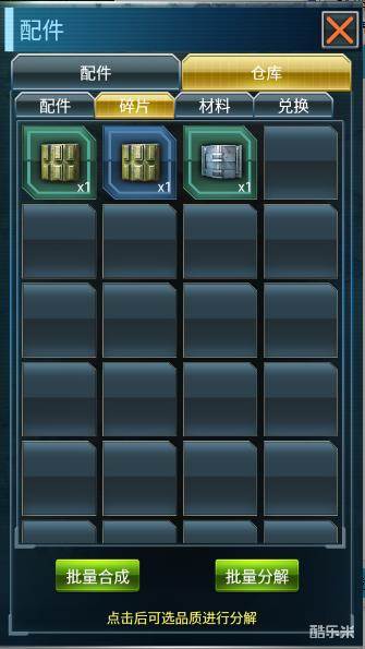 ② 合成: 当凑齐足够的配件碎片后,就可以通过合成来合成对应的配件