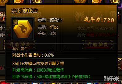深渊·异世树妖进入时需要消耗神魔深渊挑战书1本。挑战书可以在神魔秘境中刷。掉落的宝物分别是(并不是一定掉,有些宝物是含概率掉落的):穿刺·魔秘宝(传说)、秘宝精华(中)、BOSS精华(中)、天启战盔(10转)、天启战链(10转)、天启战带(10转)。其中最极品的自然属于穿刺·魔秘宝了。作为品质传说的魔秘宝,它能在PK时给玩家带来对战士伤害增加0.6%的效果。如果打出实属不易,玩家多多珍惜。