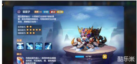 雷震子是一个14资质的中排输出兼控制型的武将,在技能方面上,