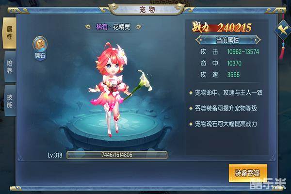 2、宠物可以通过吞噬宠物口粮或者紫色以上装备进行升级