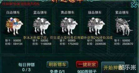 大家在开始运镖的时候会发现,屏幕中间会有个【加速】的图标,玩家只要点击它就可以让马儿跑得快了。不过,如果点一次,出现了“马儿很疲惫”之类的话,就