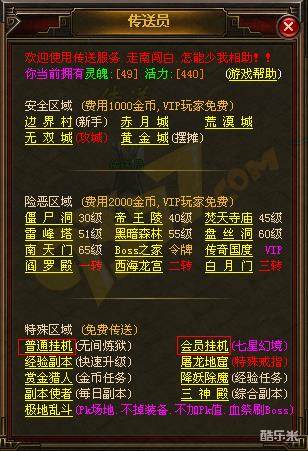 一般到了55级主线就断了,这个时候首先去做完每天每日经验、金币任务、单人经验、金币副本和押镖,有条件的可以购买次数。在没有任务可做后,就可以到传送员进入安全挂机地图(分别为普通挂机和会员挂机)(图9)(会员则进入会员挂机地图)进行挂机,挂机的时候记得先在商城里购买双倍甚至三倍经验卡。这样基本上很快就可以到达60级。