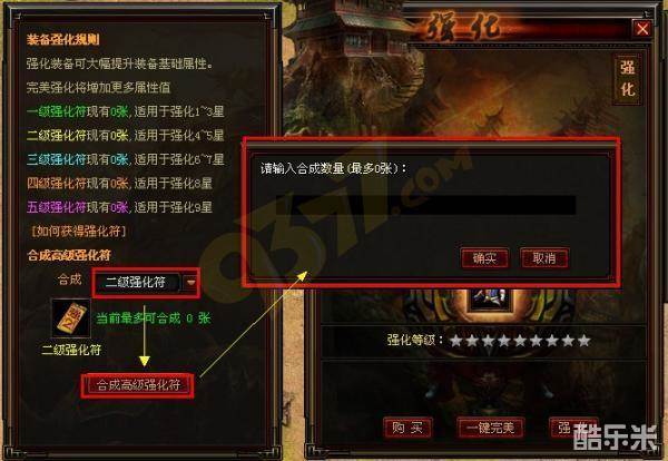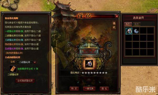 当然啦,强化装备必然要有对应的强化符,低级强化符可以合成强化符,至于强化符哪里获得嘛,任务、打怪、商城都可以获取。想强化装备,那就要强化符了。
