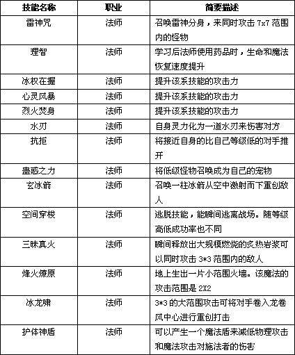 看完职业的介绍,再来看下赤月传说法师职业技能有哪些吧,如图: