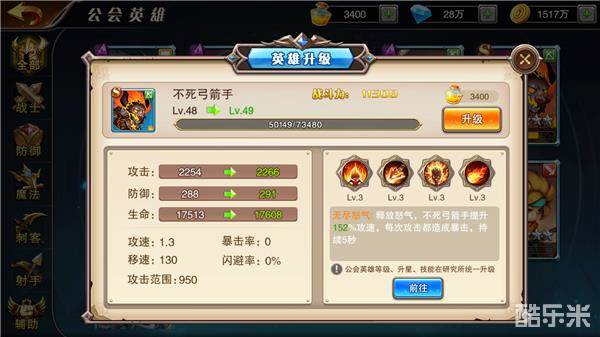 等级越高的公会,开放的英雄数量越多(公会英雄不仅仅在个人卡组中使用,在公会战、资源点防守等方面需要用到,在此不多描述)。公会英雄是可以通过公会成员集体培养来提升的,因此加入公会后,记得参与英雄培养哦,毕竟人多力量大!
