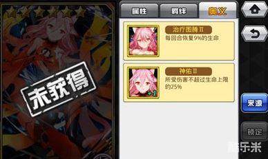 6星卡无与伦比的成长;无与伦比的队长技能;仅次于十香的无赖,爆炸性强大的觉醒。神佑和回血的组合,毫无疑问的让堞祈无论遇到谁,都能在战场上至少4-5个回合。在造成大量输出的同时,队长技能又能给团队带来大量的属性优势,并且是可以叠加的。这些属性都奠定了楪祈在后期魔导师第一人的地位,不过是六星橙卡,获取难度很大。