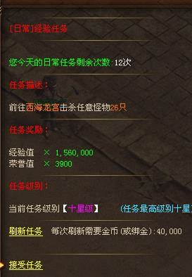 每的日常升级任务12次。全部刷到10星做,完成的时候领取3倍,