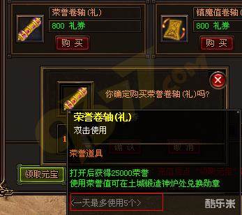 务必保证每天吃满5个荣誉卷轴,一个是800礼券,可以吃5个,