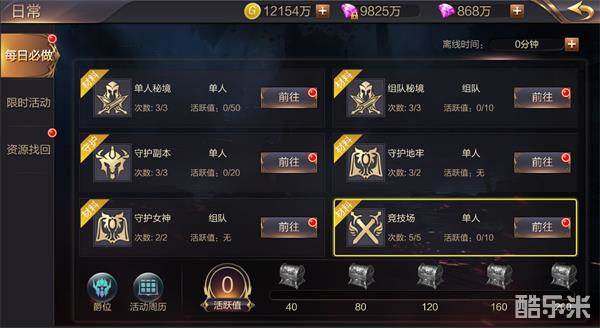1.进入竞技场方式,点击主界面日常图标进入日常界面。点击竞技场的前往按钮进入竞技场界面