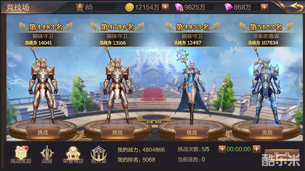 3.竞技场每天可挑战10次,VIP可购买额外的挑战次数。