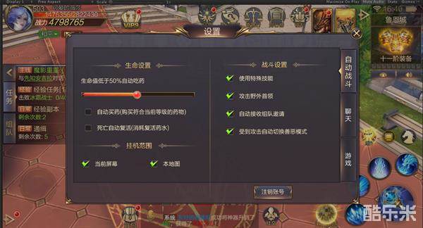 ·挂机开启方式:点击主界面右侧的自动战斗图标即可开始挂机模式(在当前地图寻怪并自动攻击)。挂机时,主界面下方会有“自动战斗”的提示。