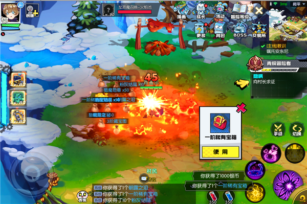 在紧张的战斗之余,想轻松休闲一下。可以选择选择自动战斗,你的角色就会主动去挑战四周的敌人,休息、经验两不误。在战斗中,也许会能惊喜的发现获得了稀有的道具!