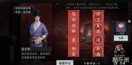 玩家可在春联中自定义输入汉字,并将这条春联贴在墙上展示给其他少侠,下面小编就为玩家带来《楚留香手游》1.18周年庆书桃符对联下联答案,一起来看看吧。