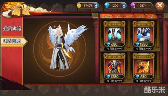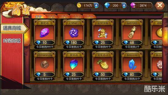 商城分为道具商城和时装商城,道具商城物品分为角色、法宝、其他等物品,这些物品需要通过钻石来购买。