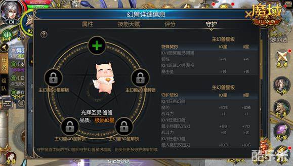 那么如何触发“守护契约”呢?玩家可在守护契约页面将年兽放置于守护星盘中,通过设置主幻兽与守护幻兽来缔结契约,享受属性加成。当主幻兽达到200星、守护幻兽达到150星时,即可获得对应属性类型的最大值。增加的守护属性,在幻兽与主人合体后,也将作用在主人身上。同时主幻兽的星级增长收益也将更高!
